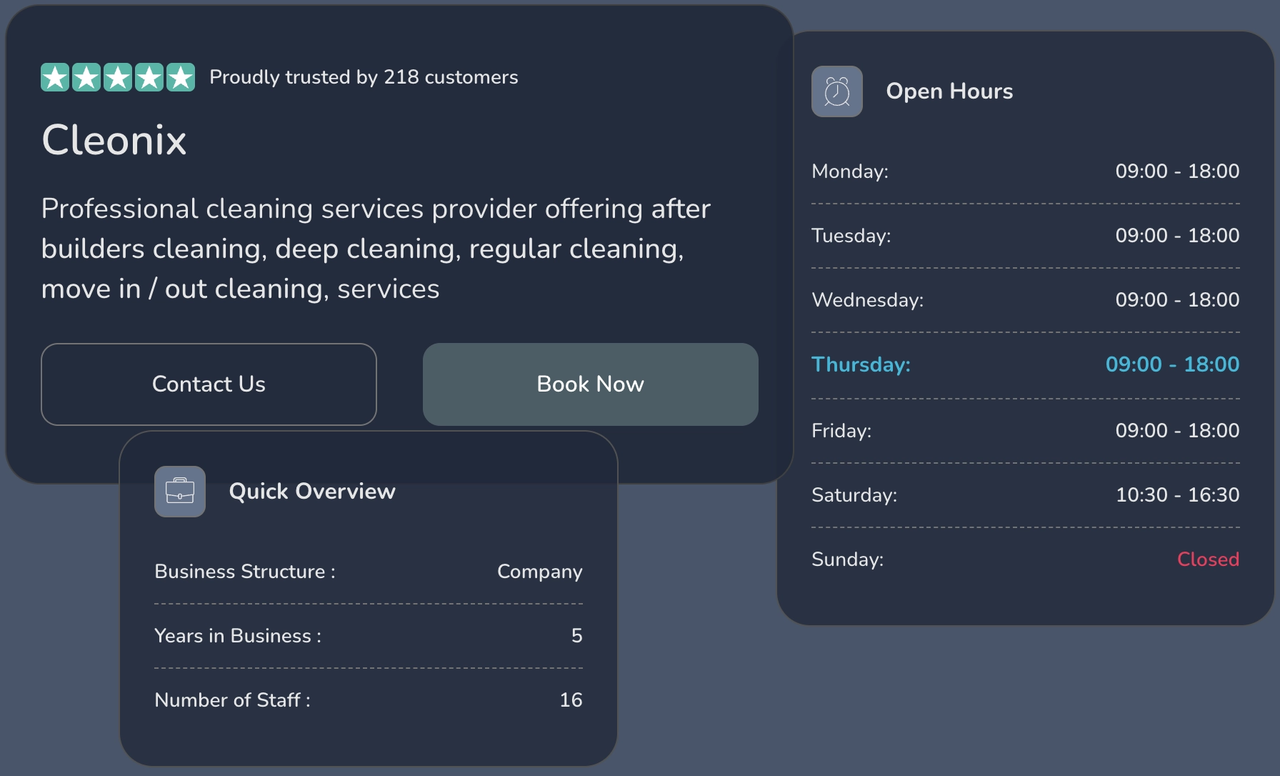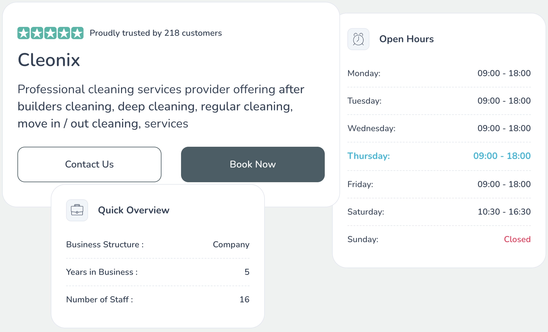 Most platforms expect you to plug into your own website or settle for a basic listing. Cleanwich gives you a structured booking presence where people can actually book, not just browse.