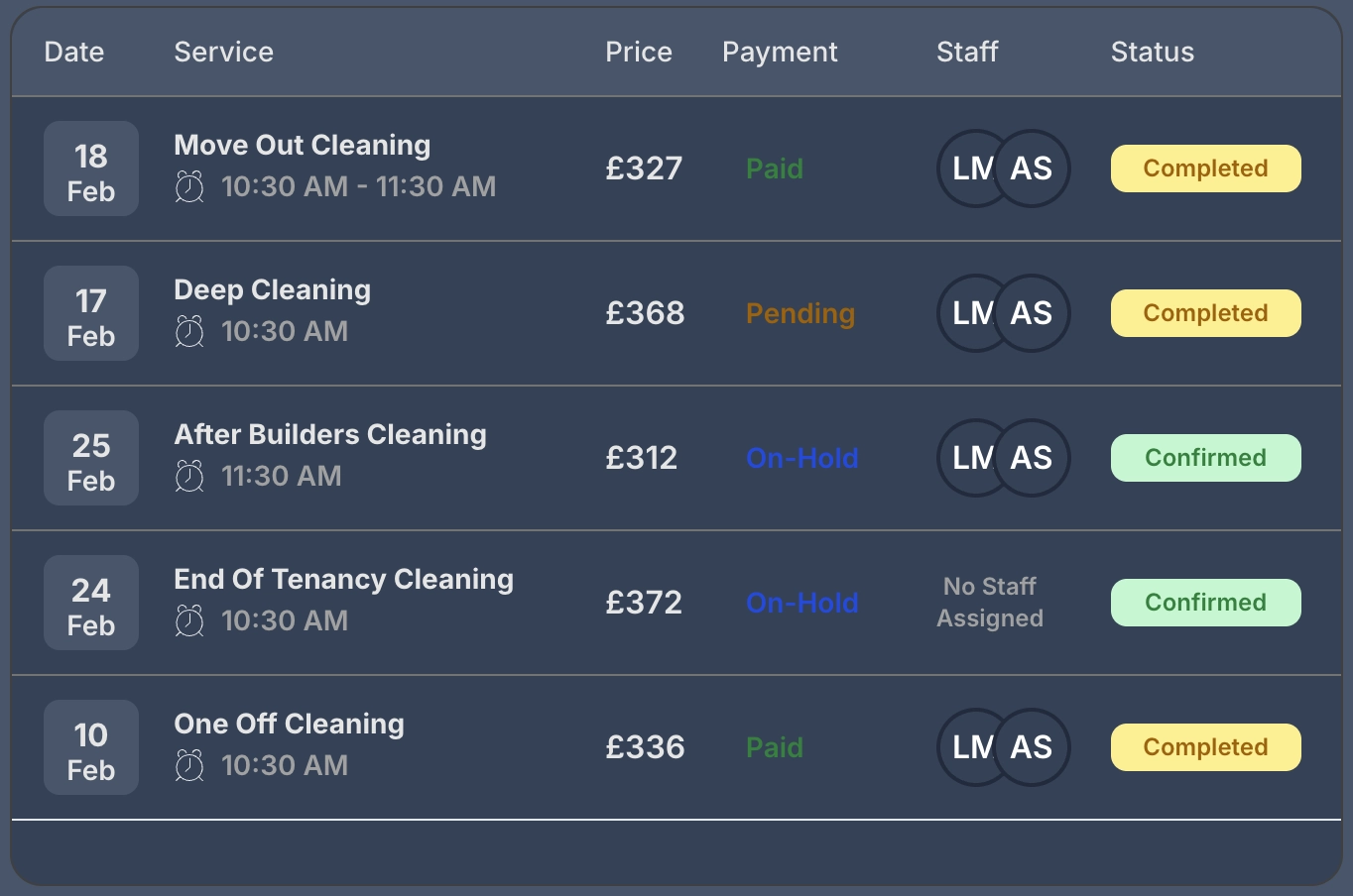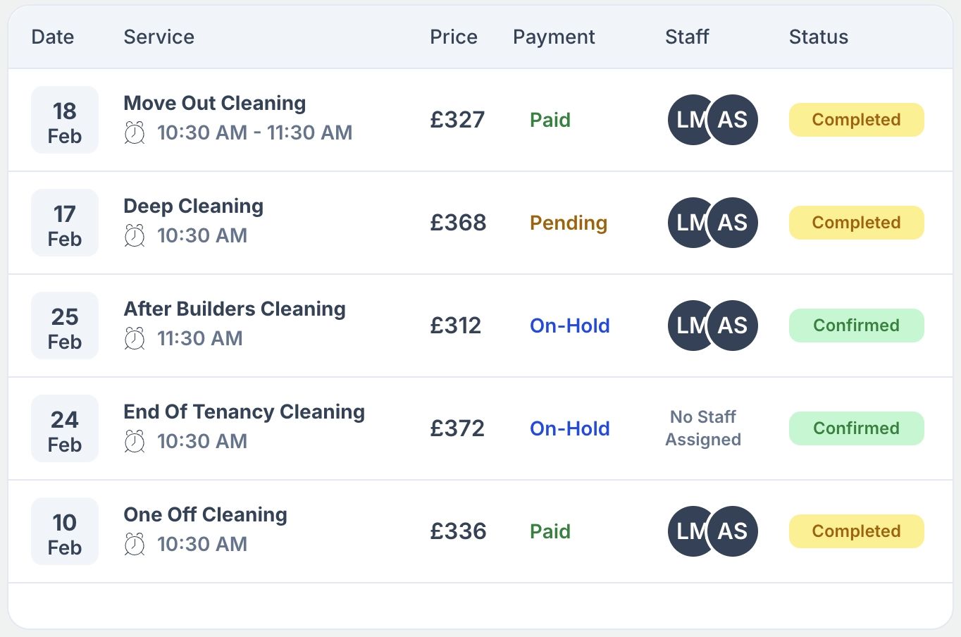 Designed for real cleaning workflows rather than generic appointment tools.