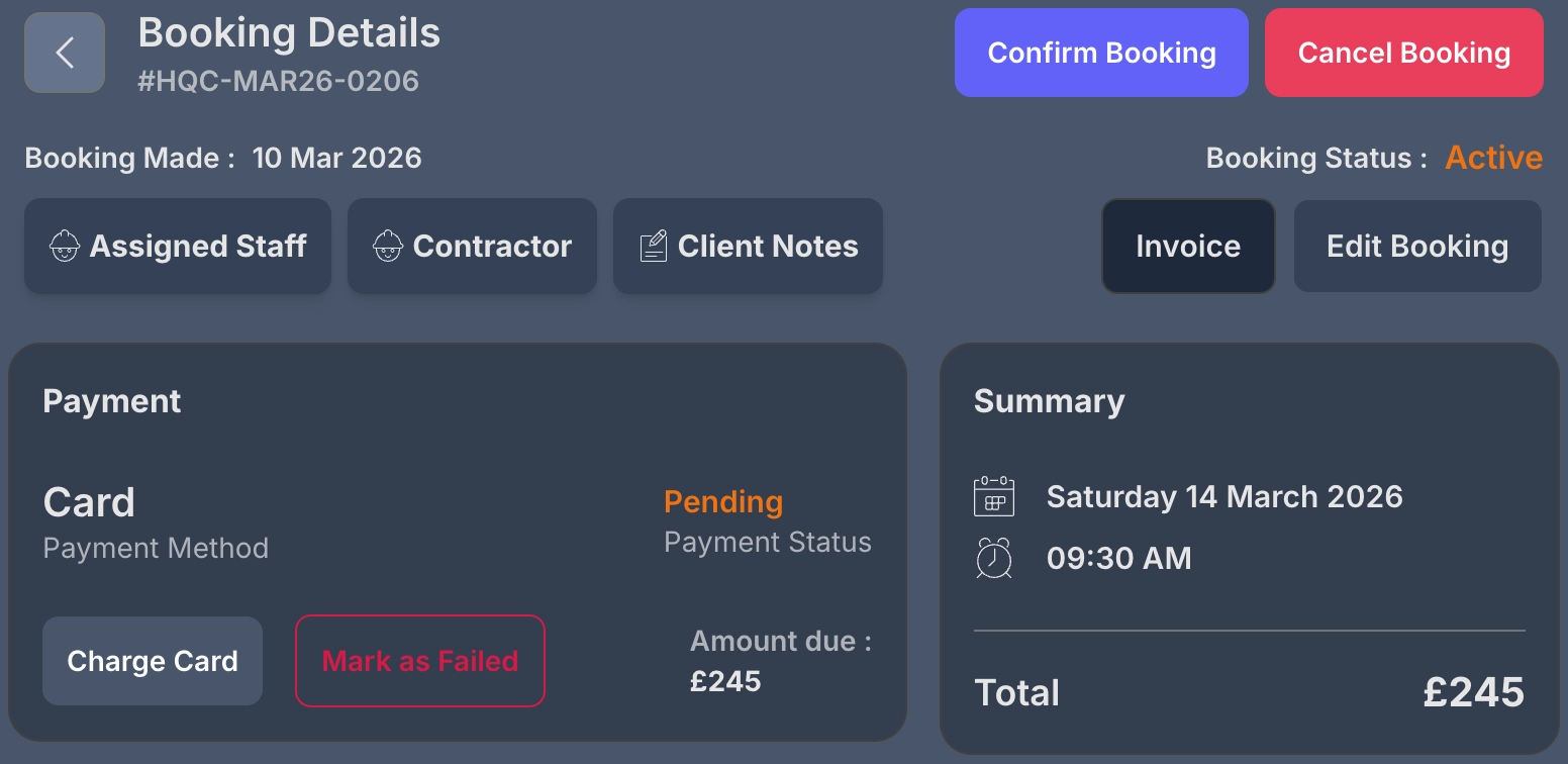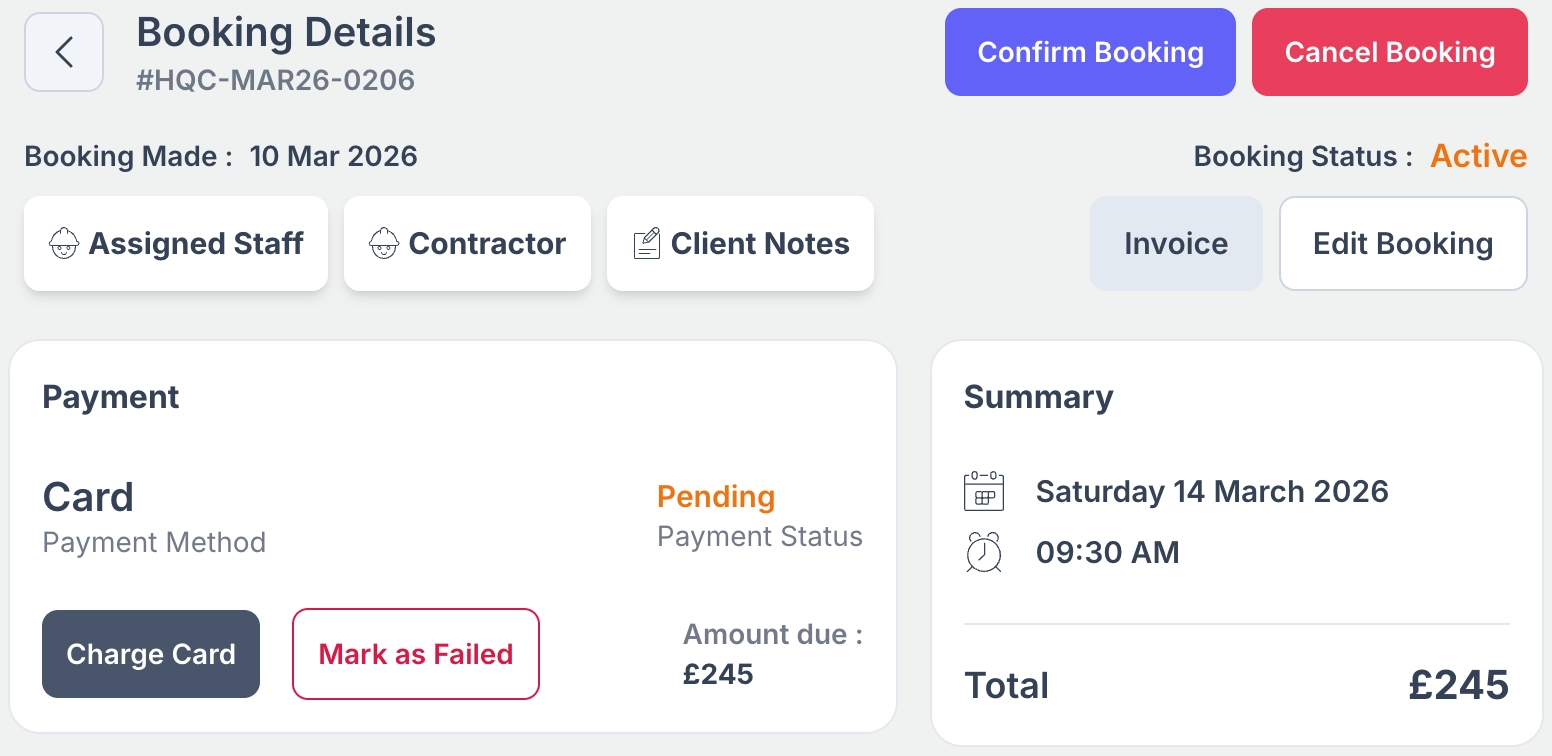 Keep booking history, repeat-customer flow, deposits, card routes, transfer support and follow-up actions connected in one place.